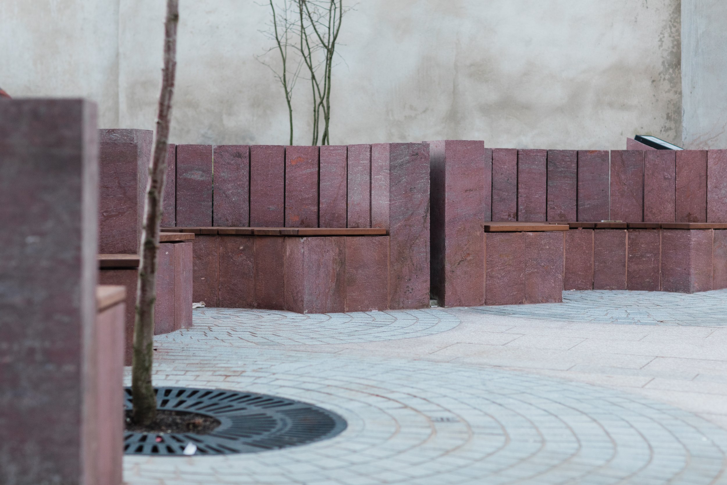 The scheme utilises leftover stone material (stone kerbs rotated to sit on their ends) to form a sculptural series of intimate but robust spaces. The space is calm, legible and comfortable, encouraging people to pause, meet and spend time supporting footfall and strengthening connections between key routes in the city centre.
